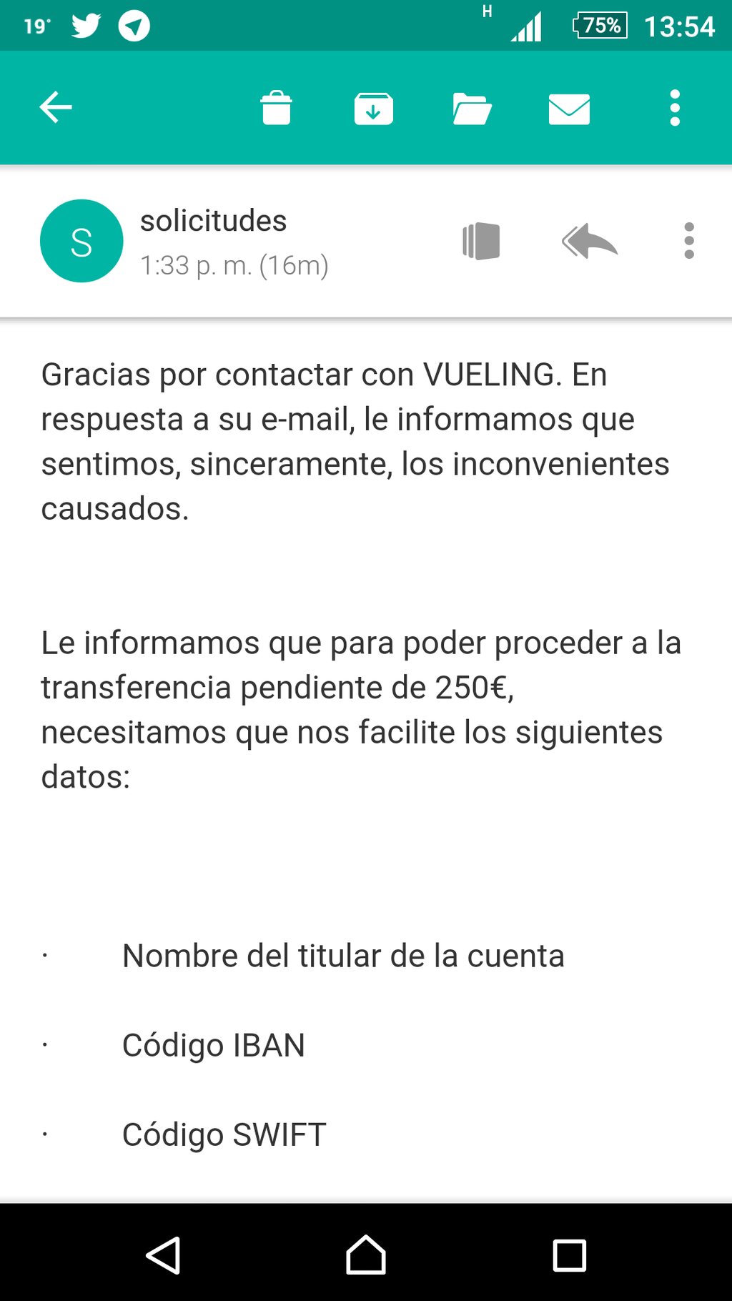 14/9/2015 Petición de datos bancarios por parte de Vueling (bieeeeeeeeeen!)
