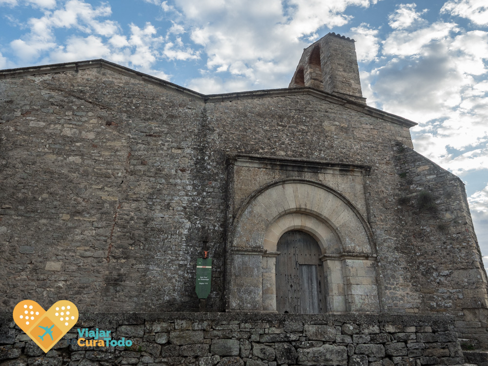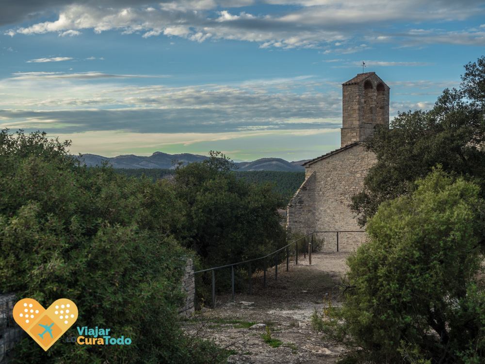 En vez de seguir la ruta circular de vuelta a la Llacuna, seguimos subiendo hacia dos de los puntos más destacados del muncipio: el castillo de Vilademàger y la iglesia de Sant Pere de Vilademàger, del siglo XII (aunque restaurada), que se encuentran en lo alto del risco. Es muy bonito llegar a la iglesia por la escalera.